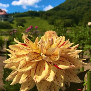 ダリア『魁の涙』 ポツポツがあるから🤔❓ やっぱりトップの孤独とか苦労とかあるんだろうな〜 名前つけてる方も魁の悲哀を知っていて、その時の気持ちがそぅだったのだろう。 お花自体はとっても華やかで綺麗✨