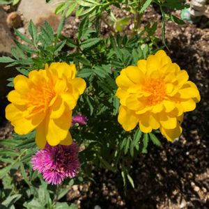 今日のお花🍃 マリーゴールド✧︎*。🌼🌼🌼🌼 二つだけ、かわいい かわいい😉