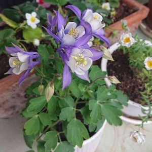 オダマキ 次々と開いてくれたのに、あいにくのお天気…と思ったら、いつの間にか外はみぞれになってる( ̄▽ ̄;)