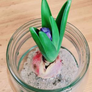 ヒヤシンス水栽培 第二弾😍 少しつぼみが顔を出してきた🥺✨ 今回は紫だ〜💜