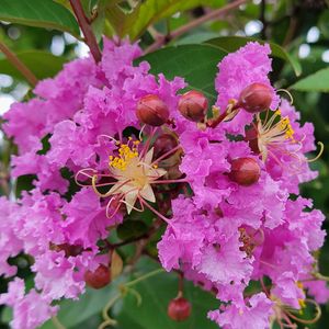 🏷️今日のお花サルスベリ 🔍👓サルスベリは白、ピンク、赤、紫といった明るく華やかな花を咲かせます 紫色💜は見たこと無いです。