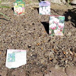 こんにちは、今日はとってもよい天気で外で動いていると暑いくらいですね☀️😖☀️ 休日出勤の代休で平日なのにお休み~💓🐶💓 一人でコツコツ庭仕事をしています(๑´ㅂ`๑) この前大量に買った球根達を植えました。٩(ˊᗜˋ*)و♪ その① *ムスカリ (ダッチオブスノー) *チューリップ(八重咲きトップリップス) *チューリップ(チャカ) *チューリップ(八重咲きラベルエポック) 春が楽しみです(*´˘`*)♥