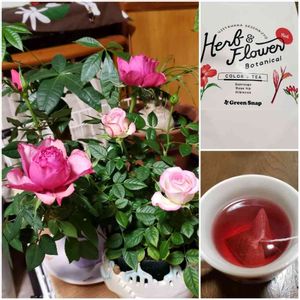 今夜のお茶はレッド❤ ローズヒップとハイビスカスと緑茶.。.:*♡ ほんのり酸味を感じる味わい( *´艸`) ミニ薔薇に癒されながらお茶してます (❁ᴗ͈ˬᴗ͈)っ🍵