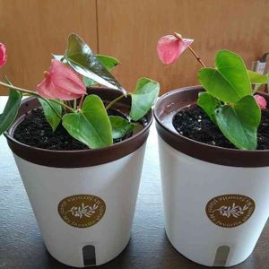 🌼アンスリューム🌼 本日二回目の投稿😅 何年もほったらかしで、辛うじて生きて、小さいけれど花も咲いていたこの子❣️ HCに行ったら水受けの着いた可愛い鉢が有ったので、ようやく植え替えました😄 でも、こんなんで良いのかなぁ🤔 とにかく、元気に大きく育ってね~😃💕