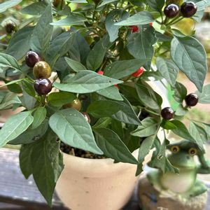 2年目の鑑賞用なんばん。3色にかえながら成長しています。 カエルちゃんとコラボです。 今月もGSの皆様、宜しくお願いします。 🏷️ どたま祭りに参加します。