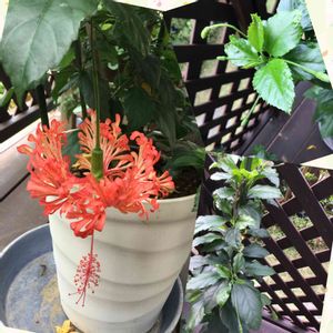 🧡🧡風鈴ハイビスカス🧡🧡 💚仏桑華💚 7月の終わりに投稿した子🌺 挿し木から🌱 まだまだ小さいから 高い場所に 移動してパチリ🤳🌟 寒くなる前に しっかり根付いたから 冬越し頑張れるね🧡🧡