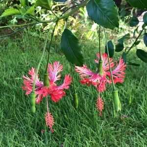 Hibiscus schizopetalus 風鈴仏桑花 大好きなお花 今年のお花は 少し小さいです