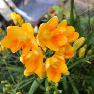 実家の前でフリージアが 風に耐えておりました😅