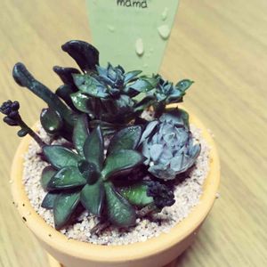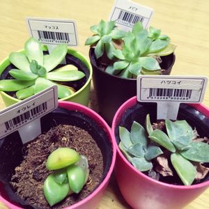 もう、しばらくはお迎えしないって決めてたのに、出かけ先で花屋を見つけ覗くと、しっかりとした苗、足元には子株も‥、葉挿し状態の子にも既に芽が出ているし、何よりこの子たちが150円って‥そりゃ狩っちゃうよねー😓霜の朝は花芽まで‥ さぁ、どこに置こうかなと‥
