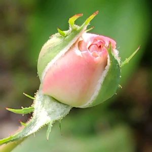 薔薇ストロベリー・アイスにもまた蕾が😄 ☔に濡れて花びらがスケルトンになっていました🩷😅 ごめんなさい、間違えちゃいました😂 これもトゥルー・グレースでした🙏