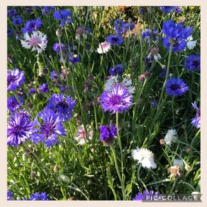 おはようございます( *´꒳`* ) 畑の矢車草です。毎年こぼれ種でどんどん咲いてくれるすごい子達!!