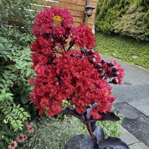 サルスベリ・ブラックパール ルビー 黒葉に赤い花がパッと映えます🤗 夏の間、ずーっと咲いて💯🌸