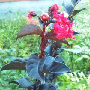 サルスベリの日は昨日でしたが なんと❗️ 毎年冬に枝枯れして宿根扱いだったブラックパールに花が❗️ Lagerstroemia 'Ebony Flame'('Ebony and Ivory') やっぱりレッドでした☝️ はじめて見た😅