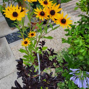 黄色いのはアラゲハンゴウソウでいいですか?ルドベキア○○○? サルスベリブラックパール💎とコラボ🔗