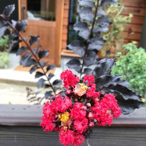 はじめて、見る色...。とても、個性的な色。 百日紅(サルスベリ)黒葉(銅葉)ブラックパールの 様です。思わず🤳🏻...