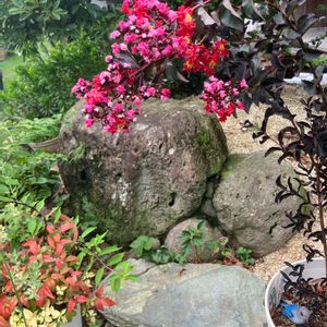 P W サルスベリ ブラックパール レッドです⭐️ 黒い葉っぱと真紅の花がとっても魅力的💕 ポットから鉢に植え替えて根付くまで日陰に置いてたら、ピンクの花が咲き始め 少々ショックを受けていました。 ピンクももちろん可愛いのですが、、 やはり赤い方が良いな😀って でも日当たりの良い場所に移すと半日ほどで 真っ赤な花びらに変わり、びっくり😱 温度や置き場により花の色幅があるのかな