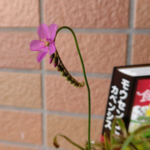 1⃣食虫植物 モウゼンゴケ カペンシス 7/4に可愛いお花が開花しました🌸 2️⃣どうやら一日花で、根元側から順番に1輪ずつ 開花➡萎むようです(7/5) なんか、葉先がかれてきているような…… 大丈夫かな💦 絵の花の色は黄色、でも実物はピンク ……実物と絵の色が違うのは、大人の事情ってヤツですね。たぶん😅