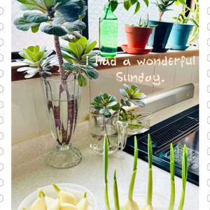 曇りの1日でしたが今週は割と暖かな日が続く様ですね(*ˊ˘ˋ*)。♪:*° ニンニク水耕栽培が楽しい(^^♪ 一昨日もうひと玉追加で始めました🧄‧✧̣̇‧ どちらも見た目が可愛い(*˙˘˙*)❥❥ 3年目葉牡丹、昨日鉢植えから切って水挿ししました✂️ 根が出たらまた寄せ植えに使います🪴 近づいて見ると葉脈がショコラ色なのがわかります🤎