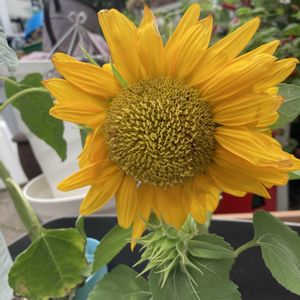 こんばんは♪ 100円でひまわり買いました🌻 ミニひまわりフレッシュスマイルとパチノレモン 既に枯れたお花が付いていたのでカット✂️したけど 次のお花が上手く咲くかちょっと心配😅