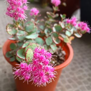 フサフサのかわいいピンクのお花です♡葉っぱもふちが赤くなってきました。
