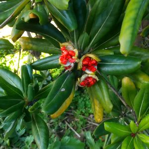 トベラの実が弾けたところ。 ベタベタします。 三浦半島 海岸沿いの道端で。 バスが来るまであと50分😅 前あったお店もなくなり、コンビニもなく、ランチを食べるほどの時間もない。 座る椅子もないので次のバス停🚏🚌まで散歩しました😄