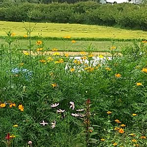 実家にて モシャモシャ😆の花 元々ここは畑でした。 野菜を作っていた 隣の花壇は、義理兄が地域猫のトイレにしていました😅 匂いはナシ。 17年飼っていたワンコが⭐️になり寂しかったのでしょうか。 親の命日忘れてもワンコの命日覚えてる と姉がぼやいてました😅
