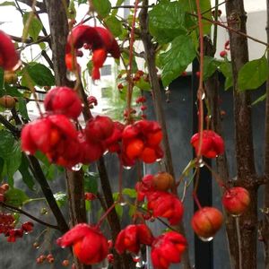 ツリバナかな💕? 雨の滴💧が電球💡みたいでした😊 マユミは4つに割れて ツリバナは5つに割れるそうです。 知らなかったー🙄