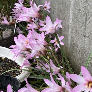 塀の外に植えたハブランサスが咲き始めました💓 ピンク🩷が並んで可愛いです💕