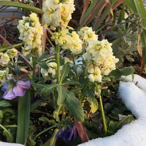 2018.1.19 さがみ野の歩道の花壇にて。 今日は久しぶりに早く着いたので 遠回りして出勤。 冬でも花壇に花が咲いてます。 なんの花でしょうか? 教えていただきました。