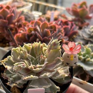 スリラーパールっていうコをお迎えしました(*^^*)お子ちゃまが2コついてます。 白い葉っぱが、うねうねしていて葉先は所々ピンクっぽく見えます👀 最近センペルさんばかりに気持ちが傾いてたんで久しぶりにこのコをお店で見つけた時には心臓がバクバクでした。 今はこんなに可愛くてもうちに居たらまた、きっとブサイクになるのはわかってるんだけどね… それでもやめられない(;´∀`)・・ァハハハ・・ハハ・・ハ・・"