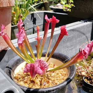 サラセニア 開花ラッシュ!?🌸 っと言いたいけど全体の 7分の1程度しか咲いてない… まだまだこれからが本番! 手前左のプルが伊勢花菖蒲園No16大型丸型選別です! これ全部で数十万は使った… 奥に紅兜やカステベイ・ドイ#2 コーティーワイドマウス(?) ルブラHFC由来、あいのきせきシリーズ、クロート あるぺんガーデンさん由来のバーキィー カクタス長田さん由来のバーキィー プルプレア ベノーサ パリディフローラ アントシアニンフリー プルプレアベノーサオールグリーン プルプレアヘテロフィラ Sarracenia purpurea 'Sylwia' プルプレア×レウコフィラ? 大彰園さん由来プルプレア ヒーローズピッチャープランツさん由来のプルプレア 等プルプレアだけでも10〜種類はあるかと思います!