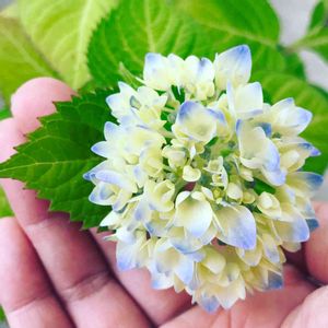 紫陽花の蕾が開きはじめたー。 今年は青でした。 とってもきれい。