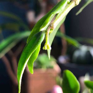 2020.1.5 🌙.*·̩͙三日月ネックレス🌙.*·̩͙ 南の窓辺にて 我が家で1番長い子2m位あります( ˶˙ᵕ˙˶ ) お花が咲きました❀.(*´▽`*)❀. 香りは甘い感じです 形は変わってます🌙.*·̩͙ グリネやドルフィンちゃんと同じ様なお花 蕾がいっぱい出来て 1つだけ咲かせました( ˶˙ᵕ˙˶ ) 親株が弱るので 他の蕾は摘みました⍤⃝♡ 本日 仕事始め 夜は新年会(*´╰╯`๓)♬