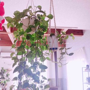 こんにちは(*ˊ˘ˋ*) 11月に大胆にカットしたポトスの 勢いが止まらないです! ひと回り大きな鉢にも植え替えていて 重みで落ちないかヒヤヒヤします。 吊す系が好きな方は どの様に工夫してますか?🌿