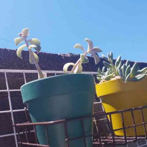 こんにちは😊 午前中は台風対策でサンルームやお部屋の中に避難させてた子達を外に出す作業💦 汗かきながら鉢減らさなきゃと痛感😣 🏷ネックレスの日 🏷毎月8日は鉢の日 に参加させていただきます🙋♀️ ◀️古株の【ルビーネックレス】さん💜 切っては増やし切っては増やし子や孫が増えお嫁にたくさん出しました💜 ▶️ホームセンターで取っ手の付いたプラ鉢を見つけました👀鉢を移動する時便利です💡春に見つけたお気に入りの斑入り【ステレオスペルマム】さんを植えました💚
