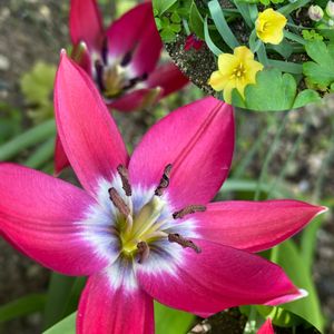 小さな花壇 原種のチューリップ🌷 紅色❤️と黄色💛