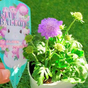 はじまめしての スカビオサ ブルーバルーン 苗に付いてるタグ 最近かわいいのが増えましたね。( ⁎ᵕᴗᵕ⁎ )❤︎