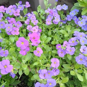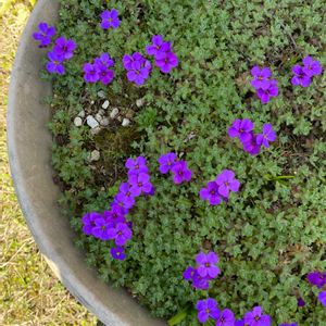 オーブリエチアがスタートしました。紫ブルーの花色が素敵です。