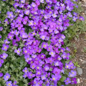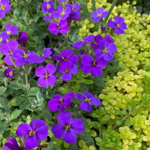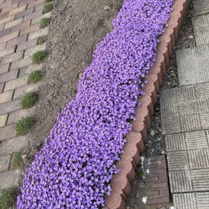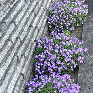 今年もオーブリエチアが咲きました💜 遠目にも映える鮮やか色で、ご近所さんの人気者なんです💜