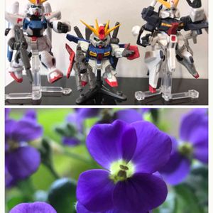 ガンダムのガチャガチャ🤖 まさかの組立て式😵 作ったのは主人です💪🤨 細かい作業ホントにありがとう🙇♀️ 高さは一番高いので7㌢くらい スタンドも付いていて安定感あり ちっちゃくて可愛い〜😍 💜は我が家のオーブリエチア✨ 小花が可愛い😊 お花を楽しんだら地植えしようっと🎶
