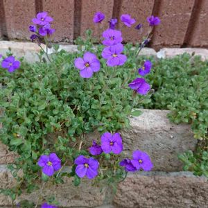 オーブリエチア 今年は花が遅い 筒抜けのブロックなのですが 一度土を変えた方がいいのかな
