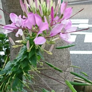 クレオメ 西洋風蝶草 酔蝶花 蝶が群れて舞うように咲く花 タネがいっぱいとれそうね