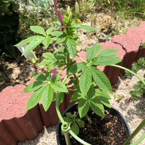 歩道わきのガッチガチの土壌です。 鞘ができています。 葉は赤みおびてます。 名前教えてください🙏 ちゃむさんより 「アフリカフウチョウソウ」と教えていただきました!ありがとうございました! アフリカからやってきましたか〜 この過酷な環境下、納得!