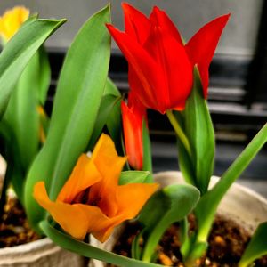 あっち向いたりこっち向いたりで可愛いチューリップ🌷咲きました忙しい毎日に癒されチューリップ🌷元気になりました 明日もがんばろーと💪