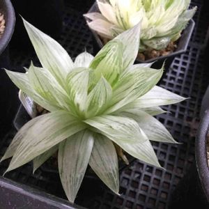 仙女香。 子株No.2です。 水やりしたての赤玉土に映える美白ハオルチア。 葉緑素少な目。 こう見えて結構丈夫!
