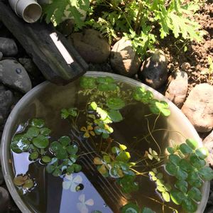 保護用のメダカ鉢。ウォータークローバーがどんどん繁殖してくれているので助かる!
