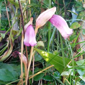 ミニビオトープに半分沈めてある鉢の中にもナンバンギセルが生えてきて咲いています。