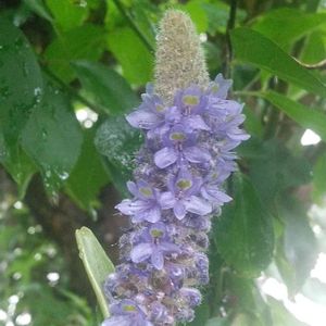 ポンテデリアが咲き始めました。鉢から飛び出して水面が見えなくなってビオトープではなくなってしまっています😓