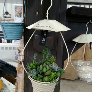 小さなハンギングポットで多肉植物の寄植えを。ちょこっと飾りたい場所にも是非♪