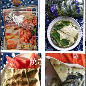 🌿モロヘイヤ焼き🌿 がよちゃん流〘食パンが苦手なので…!〙 朝食です ( 💝グルテンフリー) モロヘイヤ1袋刻みました🌿五穀米粉、卵🥚、とろけるチーズ、米油・ごま油 次の日🌿🌿🌿🌿 ショウガ🫚・ゴマ・とろけるチーズ・マヨネーズ少々、ごま油 ソレナリに美味しいです😋🥘 め昆布でも美味しいです😋🙆